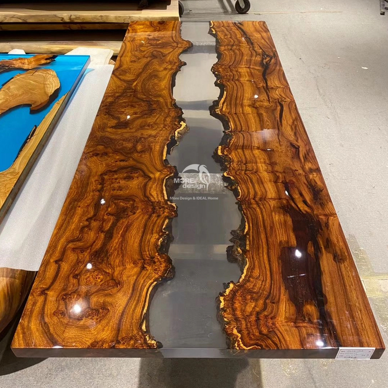 Our company newly developed solid wood table for epoxy resin, solid wood have South American walnut, oak and American walnut, zebra, cherry wood, etc., all products can be produced according to customer's design , the moisture content of solid wood under 14%, imported brand resin,the color is optional, this product is an artwork,so the production cycle is longer, the product specifications 500-5000 x300-1500 x50mm, other specifications also can be customized.