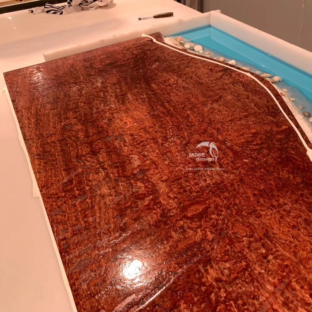 Our company newly developed solid wood table for epoxy resin, solid wood have South American walnut, oak and American walnut, zebra, cherry wood, etc., all products can be produced according to customer's design , the moisture content of solid wood under 14%, imported brand resin,the color is optional, this product is an artwork,so the production cycle is longer, the product specifications 500-5000 x300-1500 x50mm, other specifications also can be customized.