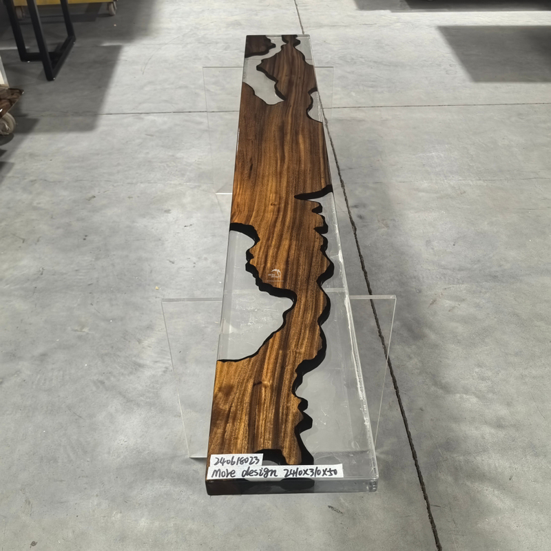 Our company newly developed solid wood table for epoxy resin, solid wood have South American walnut, oak and American walnut, zebra, cherry wood, etc., all products can be produced according to customer's design , the moisture content of solid wood under 14%, imported brand resin,the color is optional, this product is an artwork,so the production cycle is longer, the product specifications 500-5000 x300-1500 x50mm, other specifications also can be customized.