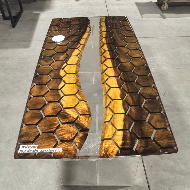Our company newly developed solid wood table for epoxy resin, solid wood have South American walnut, oak and American walnut, zebra, cherry wood, etc., all products can be produced according to customer's design , the moisture content of solid wood under 14%, imported brand resin,the color is optional, this product is an artwork,so the production cycle is longer, the product specifications 500-5000 x300-1500 x50mm, other specifications also can be customized.